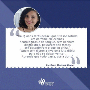 Meu nome é Cleciane Martins Maciel, tenho 40 anos, moro em Manaus – AM, capacitada em Massoterapia e portadora de distonia mioclonica.